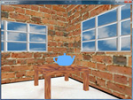 در این پروژه سه بعدی یک خانه مکعبی شکل با دیوارهای آجری طراحی شده است که در سه دیوار آن پنجره و دیوار دیگر آن در قرار گرفته است.